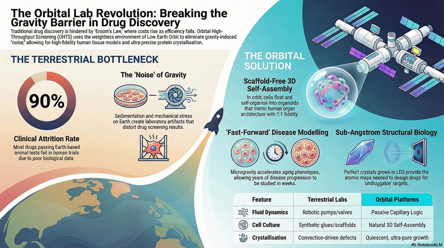 Innovator Opportunity: The “Orbital Lead” Filter. Offering a premium service where drugs are “vetted” in microgravity organoids to guarantee a higher success rate in Phase I human trials.