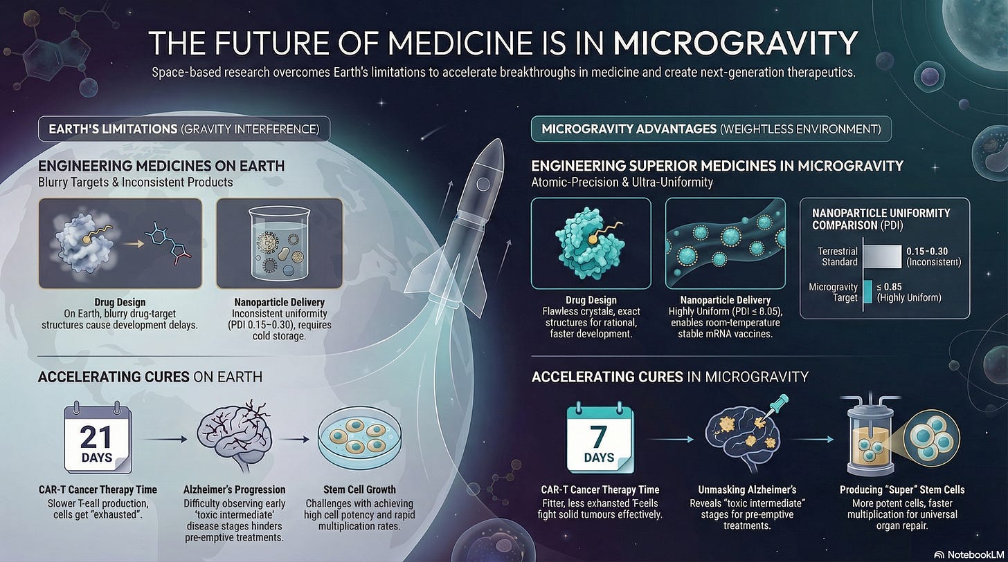 Microgravity alters the cell’s cytoskeleton (mechanotransduction), reversing exhaustion and producing “fitter” T-cells that survive longer in the patient’s body to fight solid tumors. Reducing expansion time significantly could drastically increases patient survival rates and lower manufacturing costs, potentially transforming CAR-T from a "last-resort" treatment into a primary frontline therapy for solid tumors.