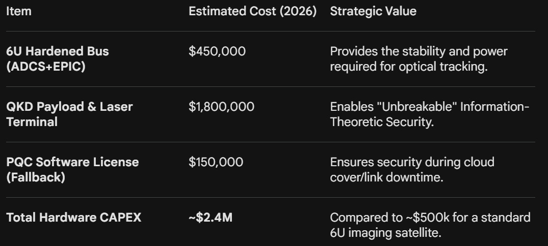 Securing a mission with quantum-grade technology requires a significant CAPEX shift, though emerging “QKD-as-a-Service” models are lowering the barrier to entry.